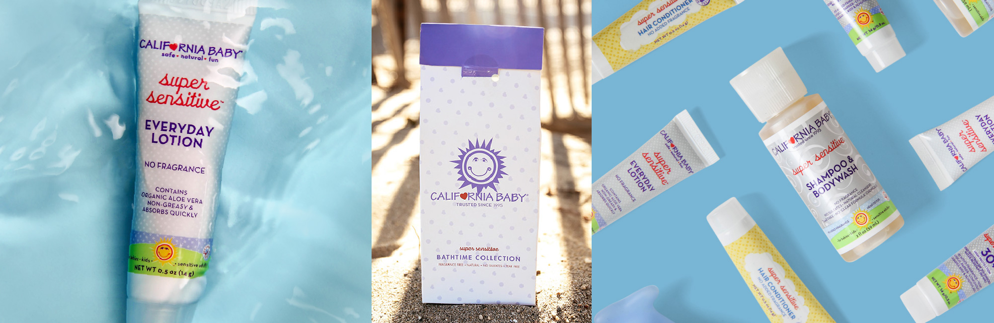 California Baby® products are naturally-derived and super gentle, designed for newborns with delicate skin, people with allergies, and those sensitive to fragrance. The Super Sensitive™ products do not contain any added fragrances,scent-masking agents, or clear formula chemicals. Packaged all together for a complete bath experience anywhere.